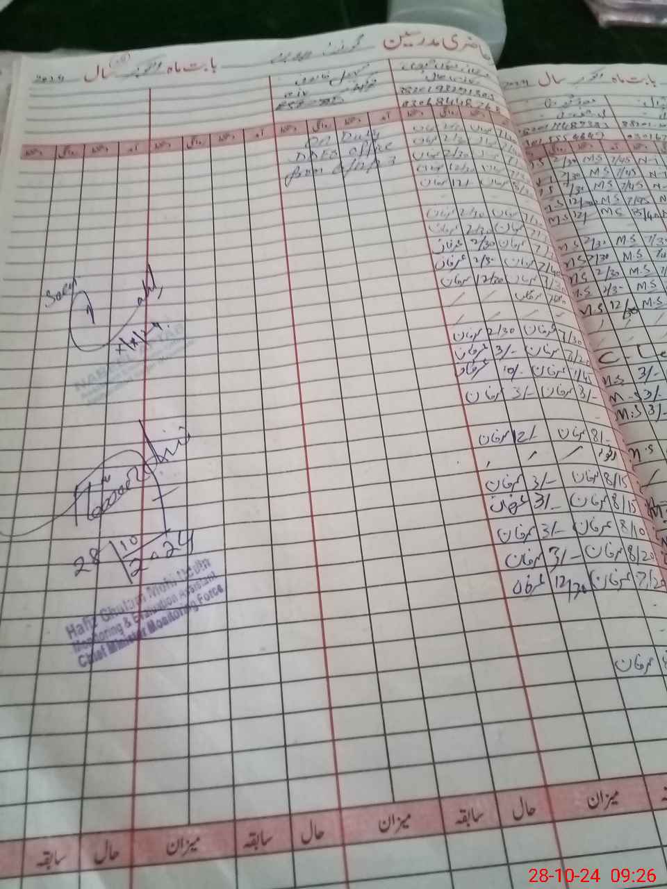 | Monitoring Date: 28-10-2024 | Start Time: 28-10-2024 09:03 AM | End Time: 28-10-2024 09:44 AM | Name of MEA: HA**** GH**** MO**** UDDI**** | |