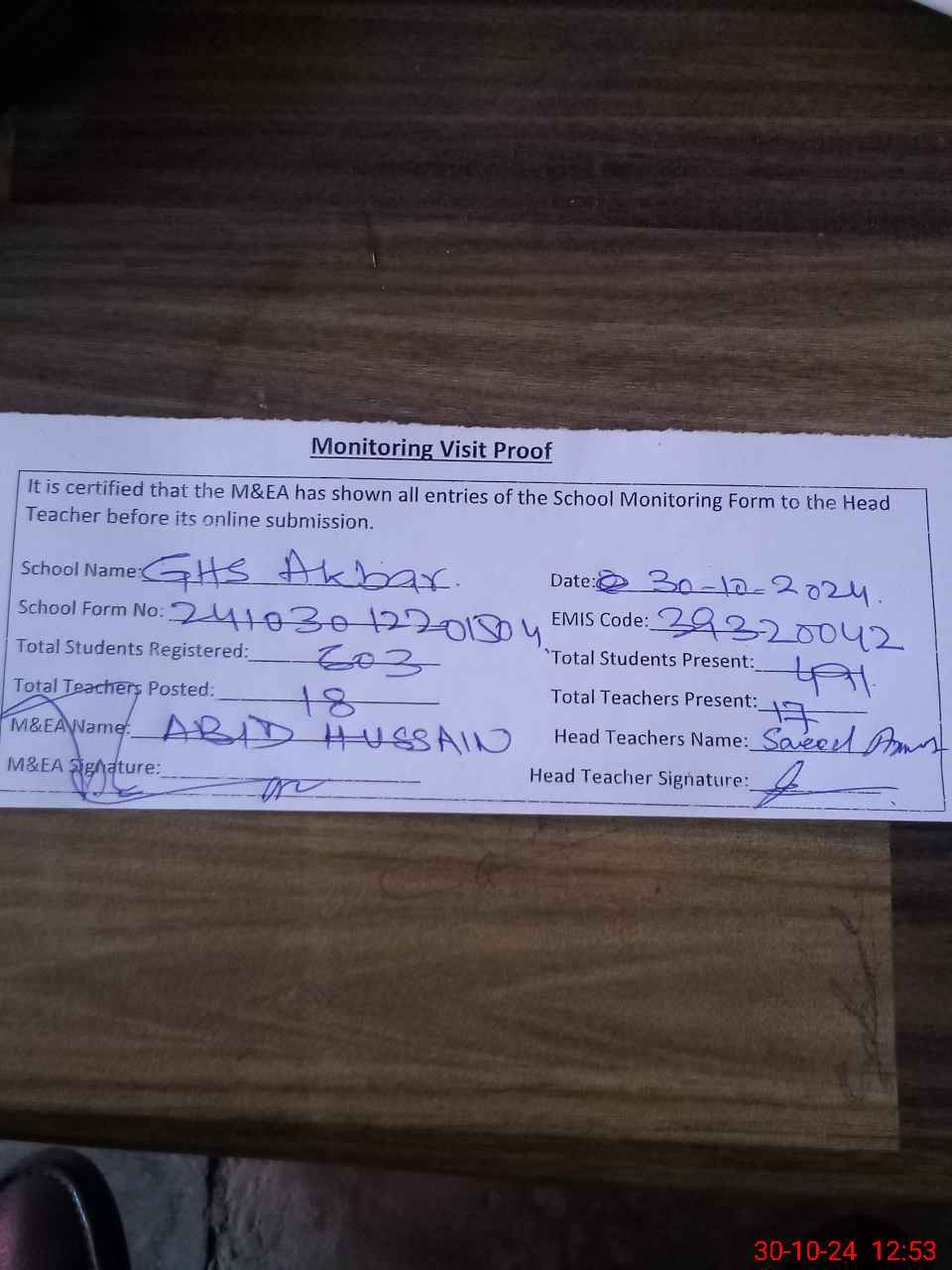 | EMIS Code: 39320042 | Name of School: GHS AKBAR | |||