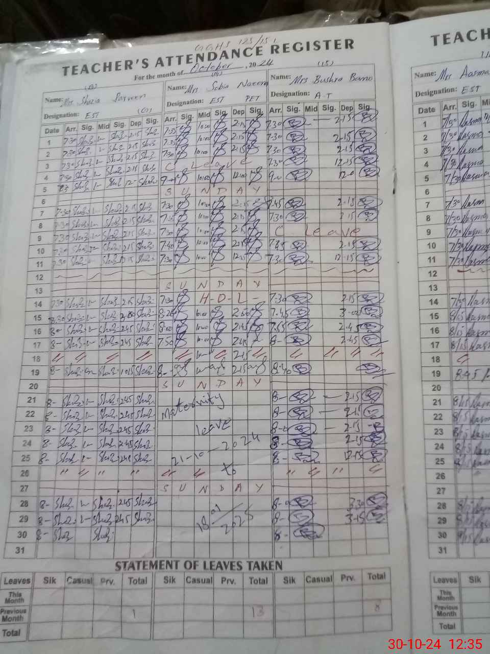 | 36**** | Hu**** Sh**** | EST | Regular | 0 | 0 | 0 | 0 | 0 | 0 | 0 | 0 | 0 | Maternity |