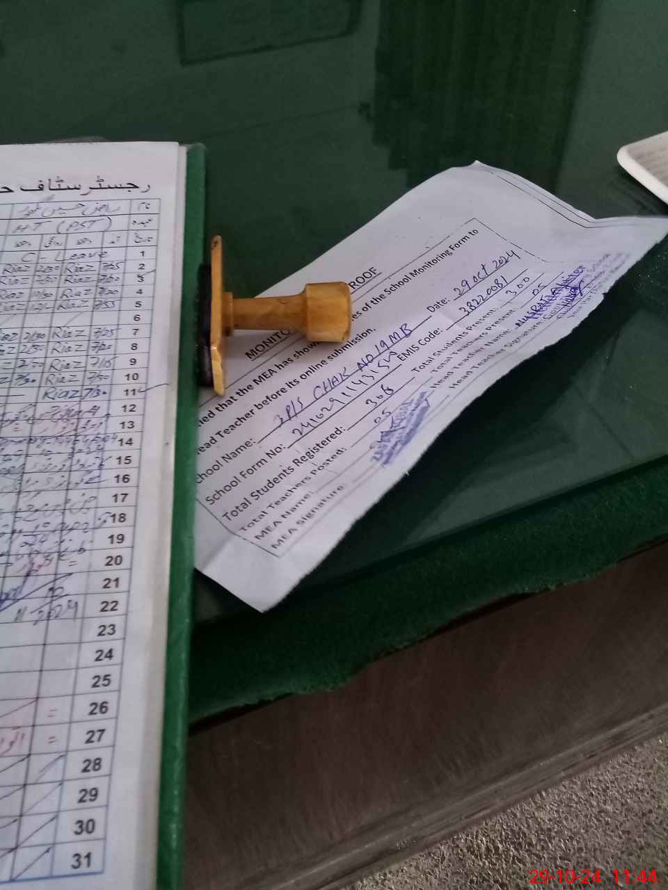 | Attendance Register | Head Teacher | MEA with School | Visit Proof |