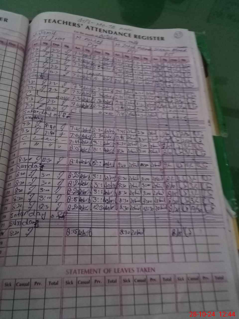 | Leave | Duty | Absent | Maternity | Medical | Ex- Pak |