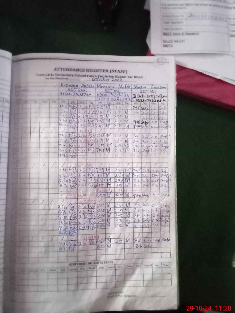 | 31**** | Iq**** Kh**** | EST | Regular | 0 | 0 | 0 | 0 | 0 | 0 | 0 | 0 | 0 | Maternity |