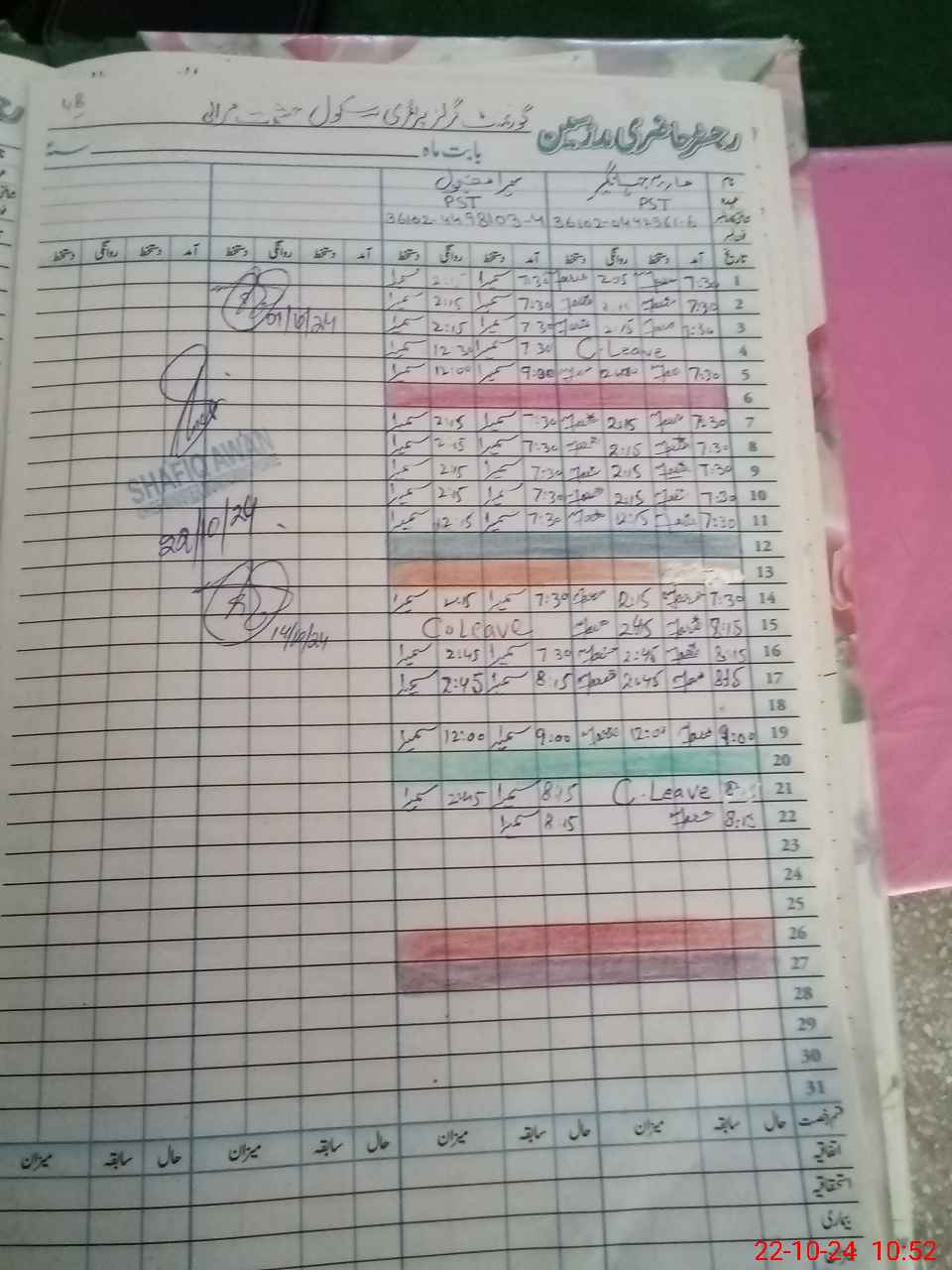 | CNIC | Full Name | Designation | R/C | Absence During Last Calender Month |