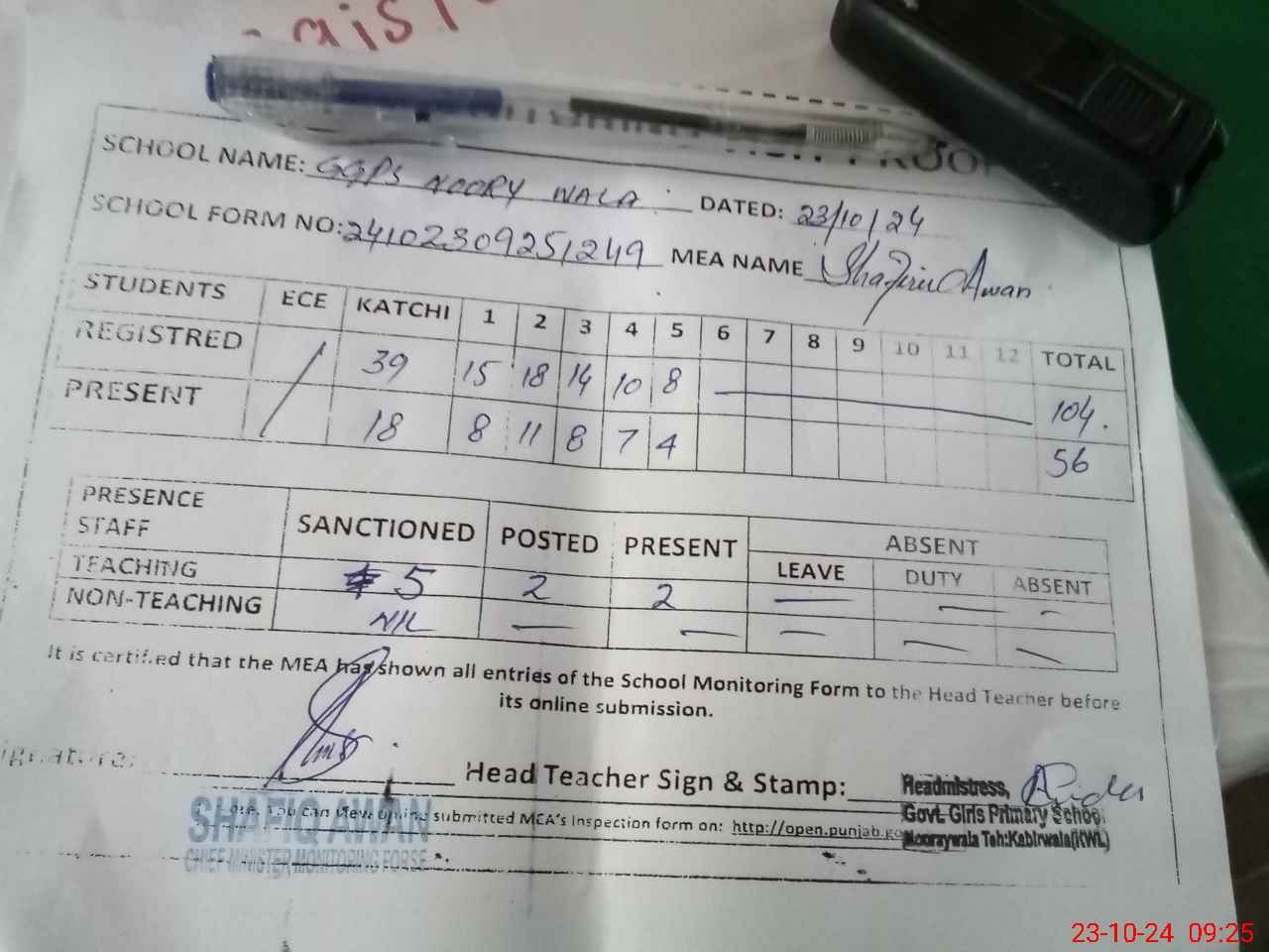 | EMIS Code: 36410379 | Name of School: GGPS NOOREY WALA, P/O MOUZA MARI SAHU, KABIRWALA | |||