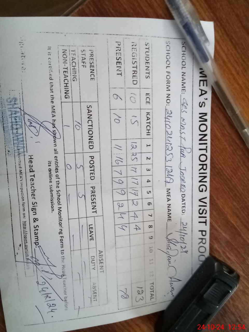 | EMIS Code: 36410176 | Name of School: GES MAST PUR JADEED, P/O BILAWAL PUR, KABIRWALA | |||