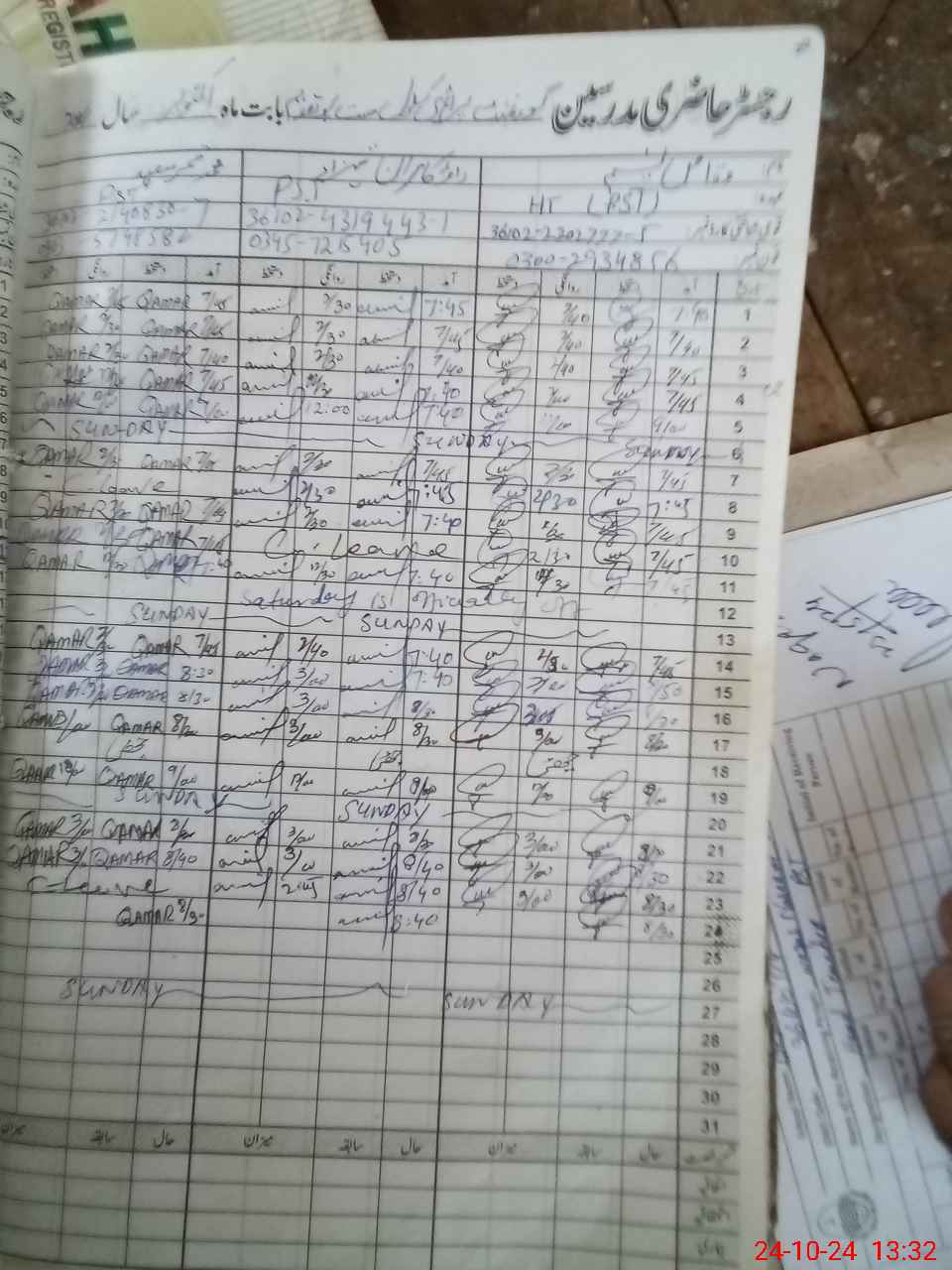 | CNIC | Full Name | Designation | R/C | Absence During Last Calender Month |