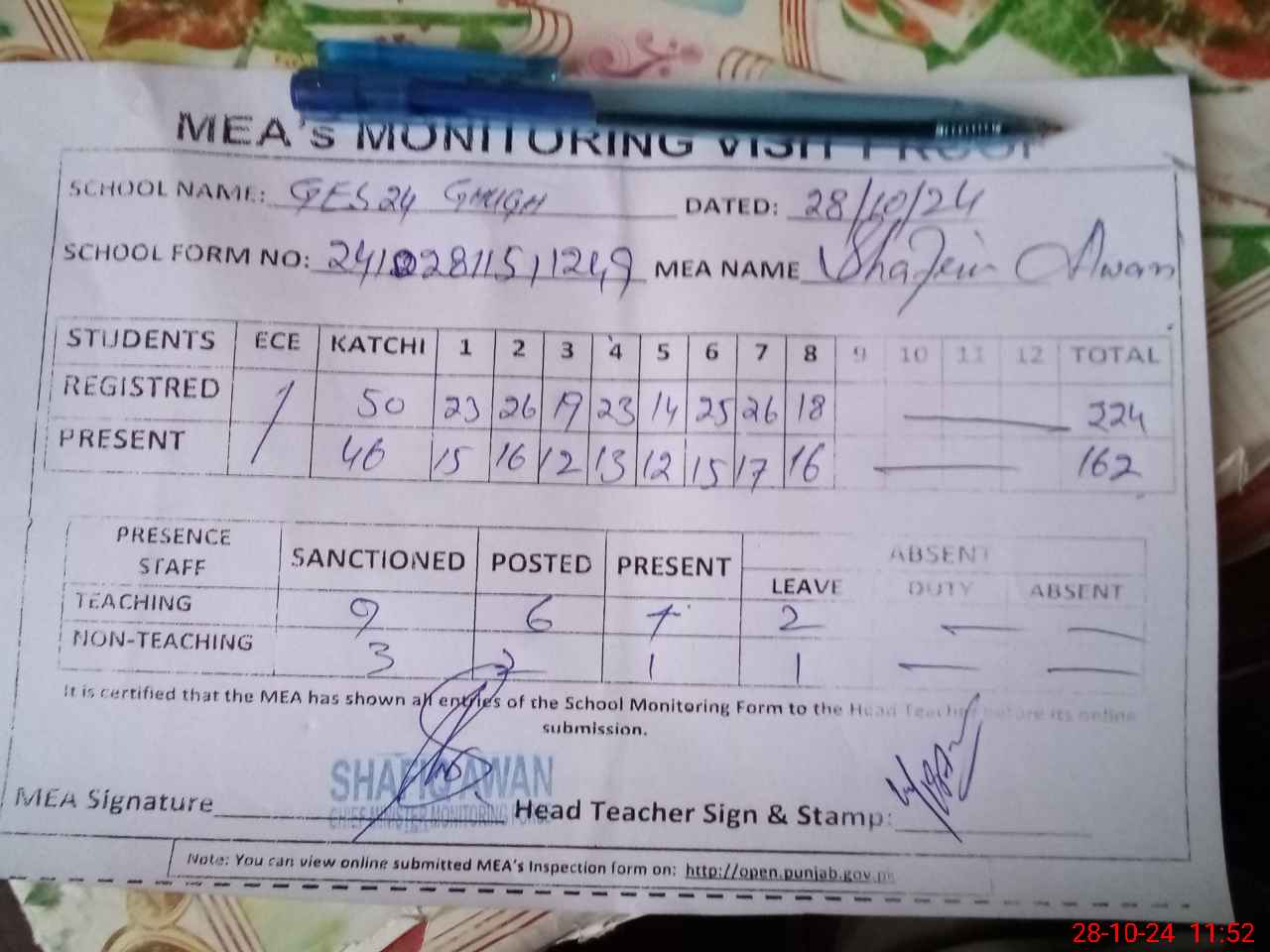 | EMIS Code: 36410077 | Name of School: GES 24 GHAGH, P/O 25 PUL, ABDUL HAKIM | |||