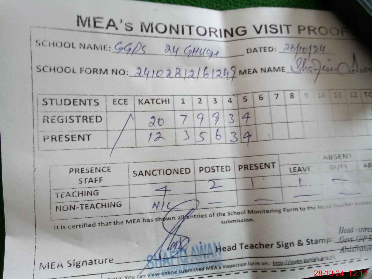 | EMIS Code: 36410487 | Name of School: GGPS 24 GHAGH , ABDUL HAKIM | |||