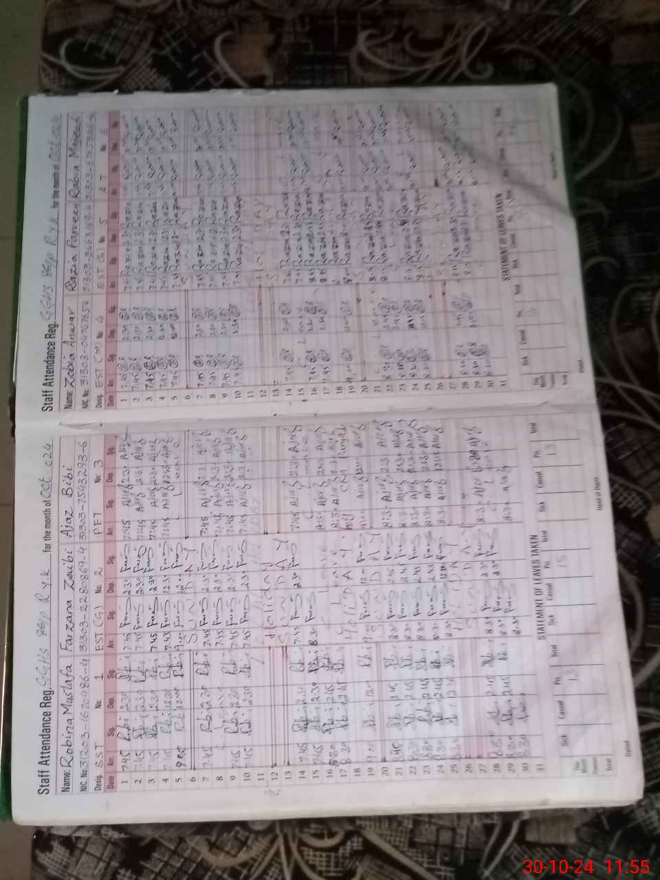 | CNIC | Full Name | Designation | R/C | Absence During Last Calender Month |