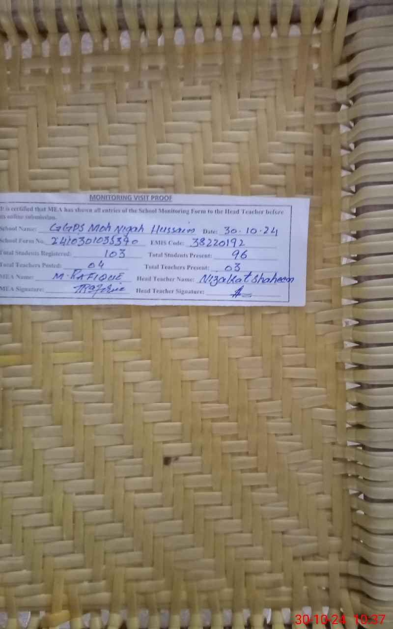 | EMIS Code: 38220192 | Name of School: GGPS NIGAH HUSSAIN CHAN | |||