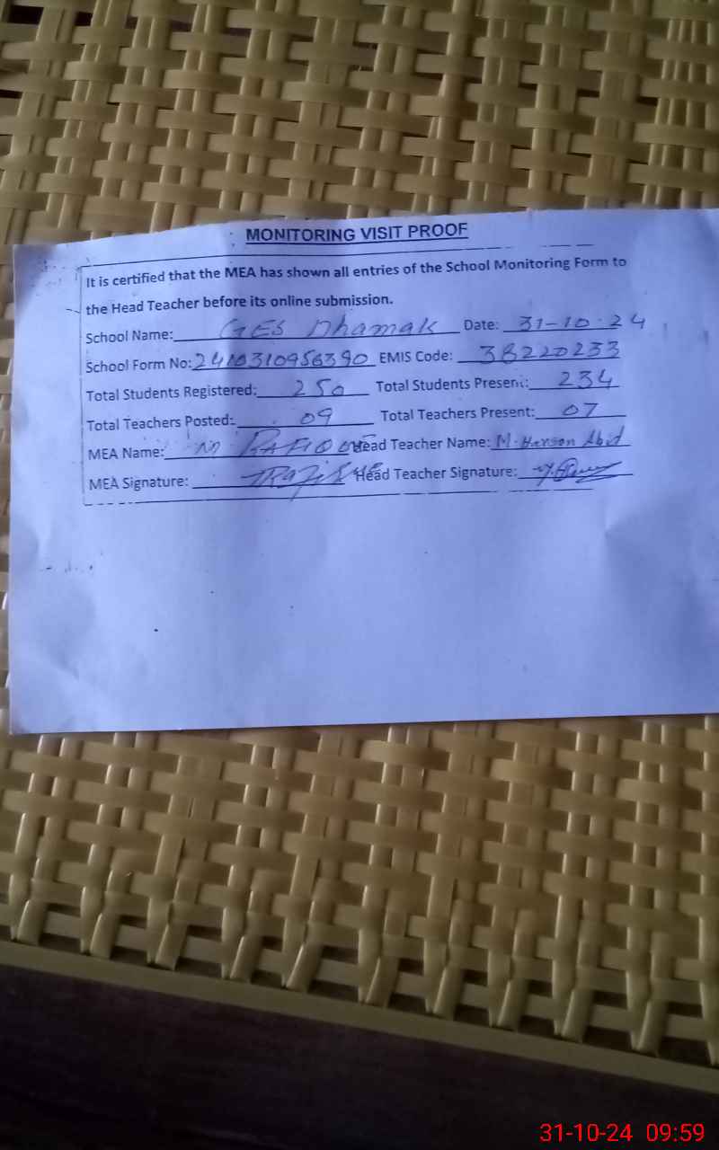 | EMIS Code: 38220233 | Name of School: GES DHAMAK | |||