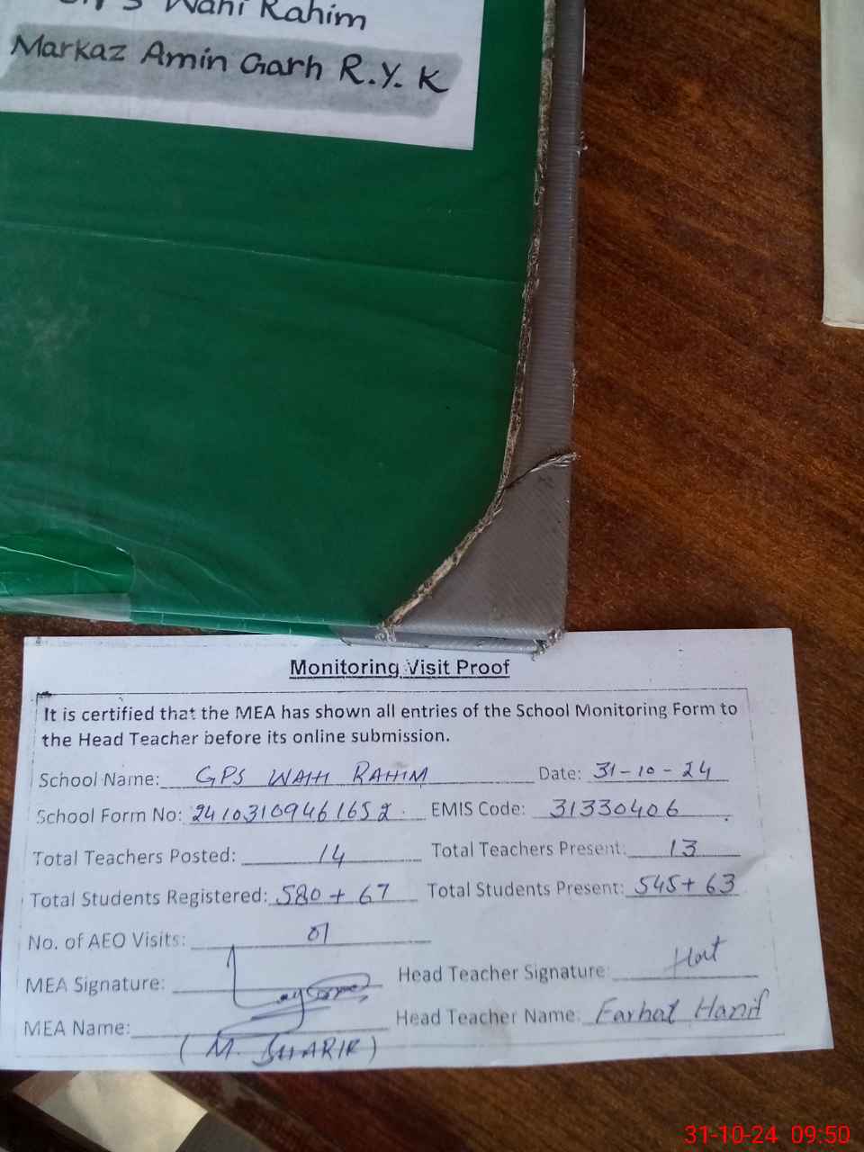 | EMIS Code: 31330406 | Name of School: GPS WAHI RAHIM | |||