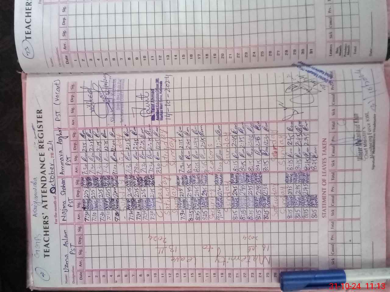 | 36**** | Uz**** As**** | PST | Regular | 30 | 0 | 0 | 30 | 0 | 0 | 0 | 0 | 0 | Maternity |