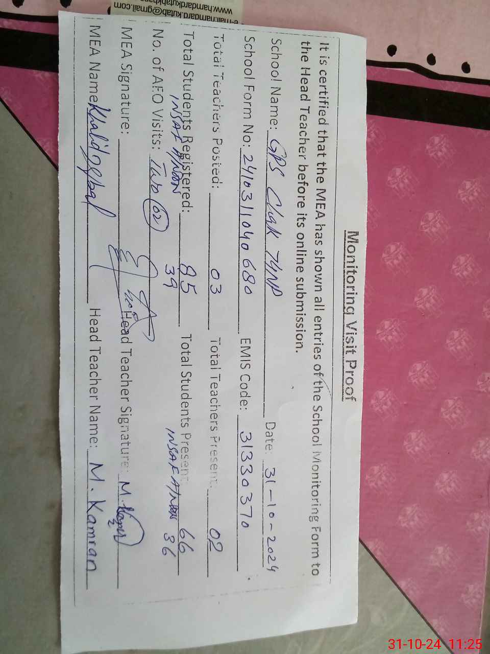 | EMIS Code: 31330370 | Name of School: GPS CHAK 74/NP | |||