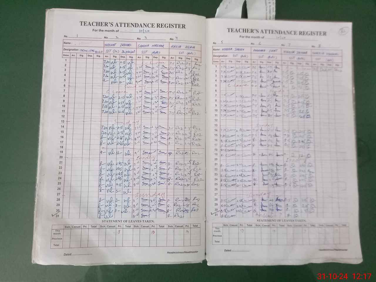 | 36**** | Am**** If**** | SST | Regular | 0 | 0 | 0 | 0 | 0 | 0 | 0 | 0 | 0 | Absent (Un-Authorized) |