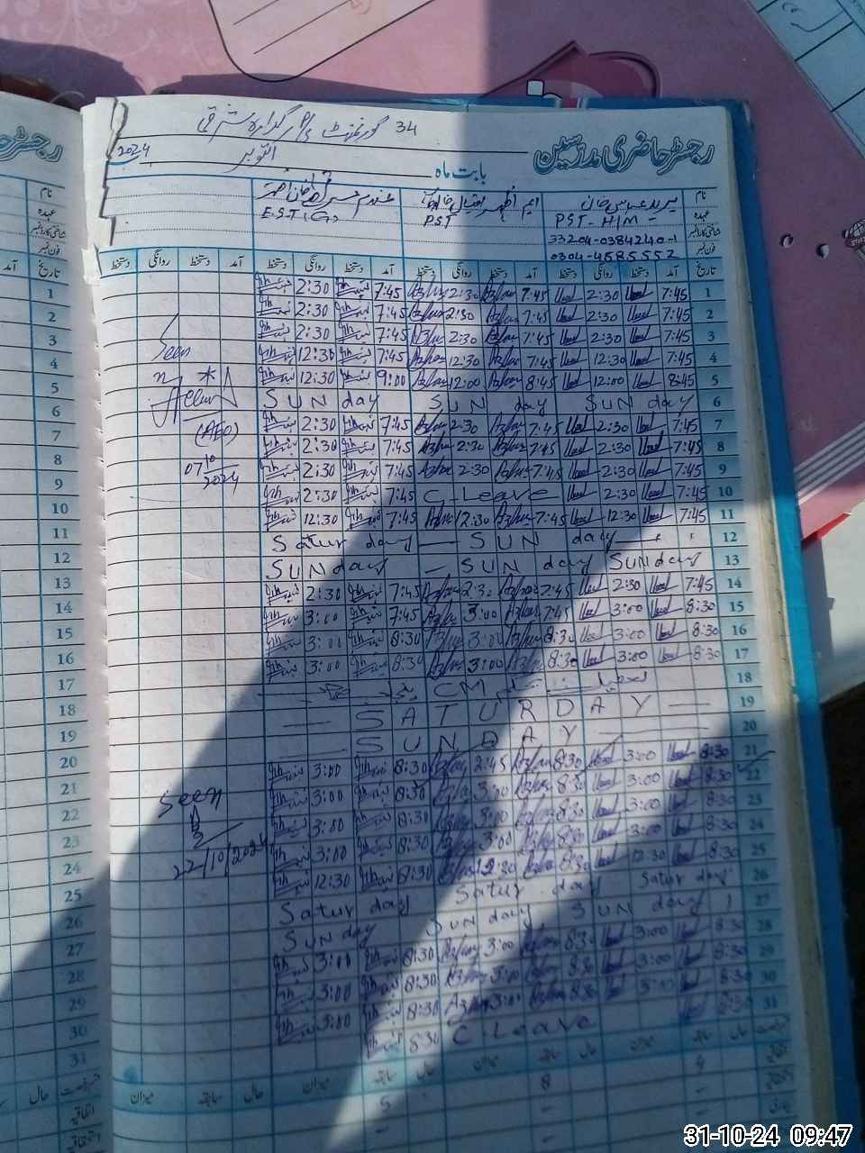 | Name: Ur**** Ab**** Designation: (School Headmaster's/Headmistress's) PST Phone/Cell Number: 03**** |