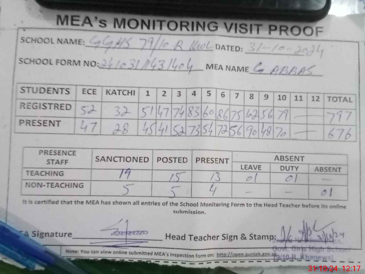 | EMIS Code: 36420119 | Name of School: GGHS 79/10-R, KACHA KHUH | |||