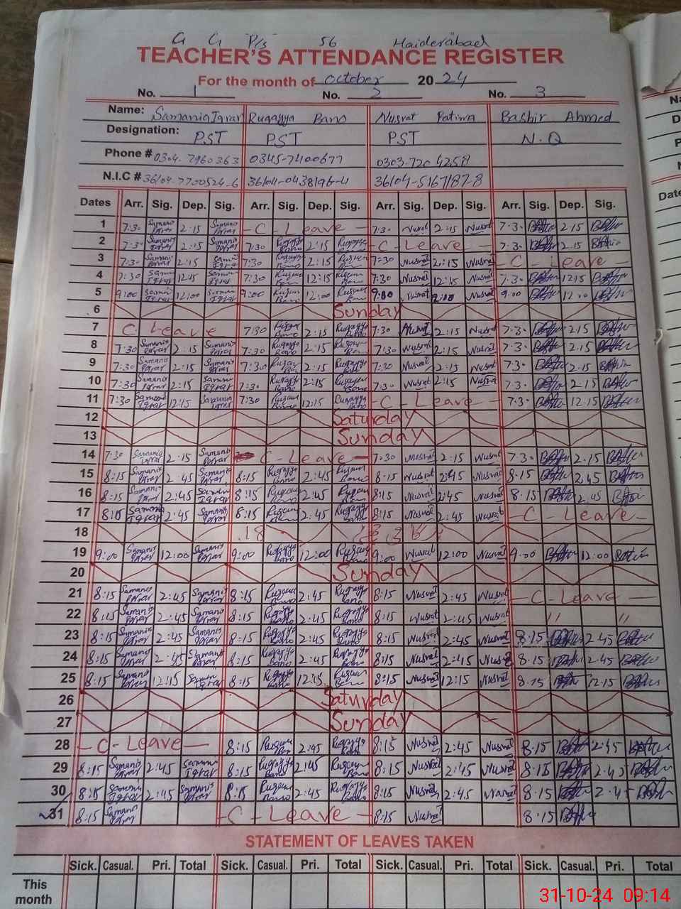 | 36**** | Ru**** Ba**** | PST | Regular | 2 | 0 | 0 | 0 | 0 | 0 | 0 | 0 | 2 | Absent (Un-Authorized) |