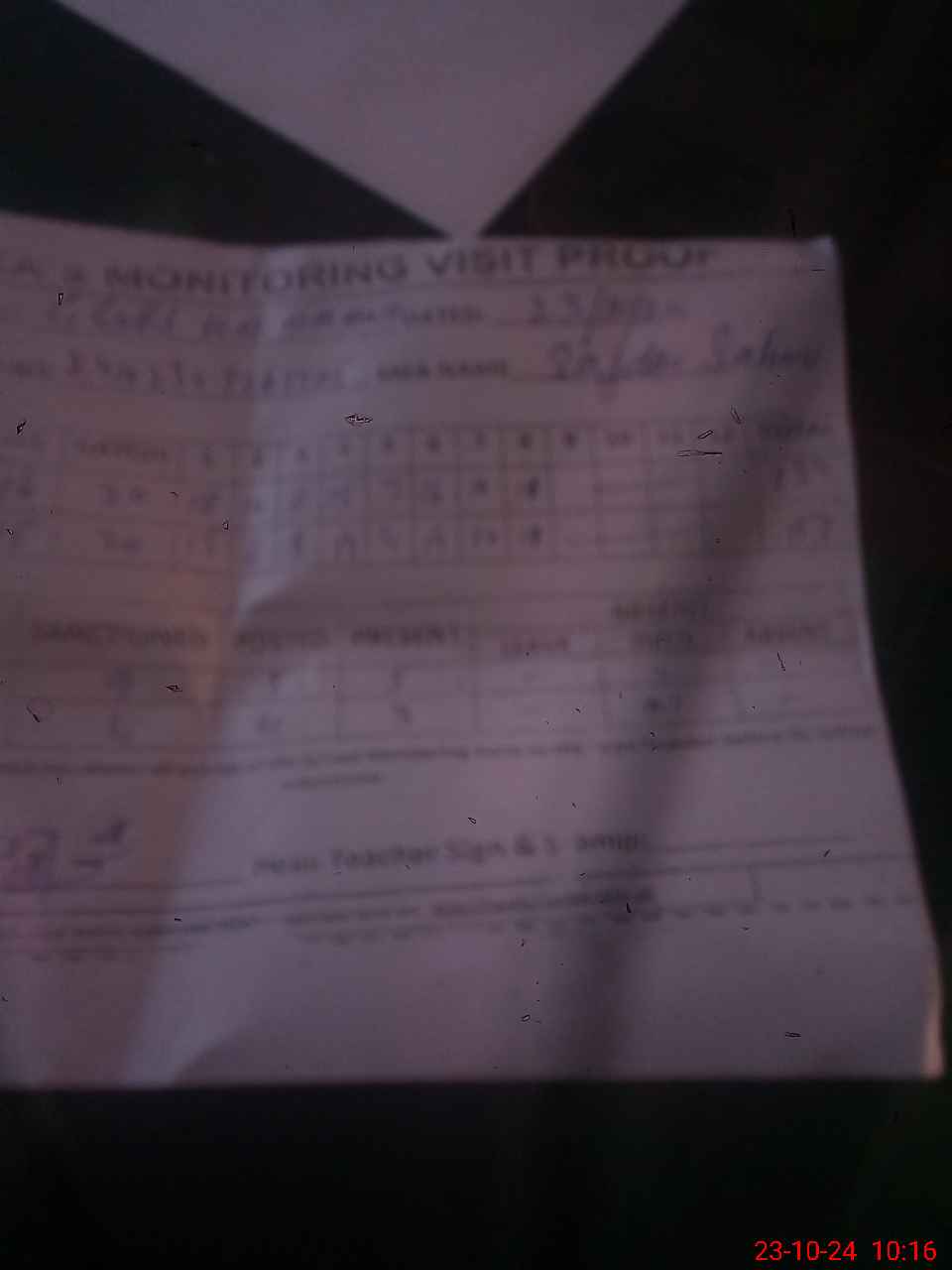 | Attendance Register | Head Teacher | MEA with School | Visit Proof |