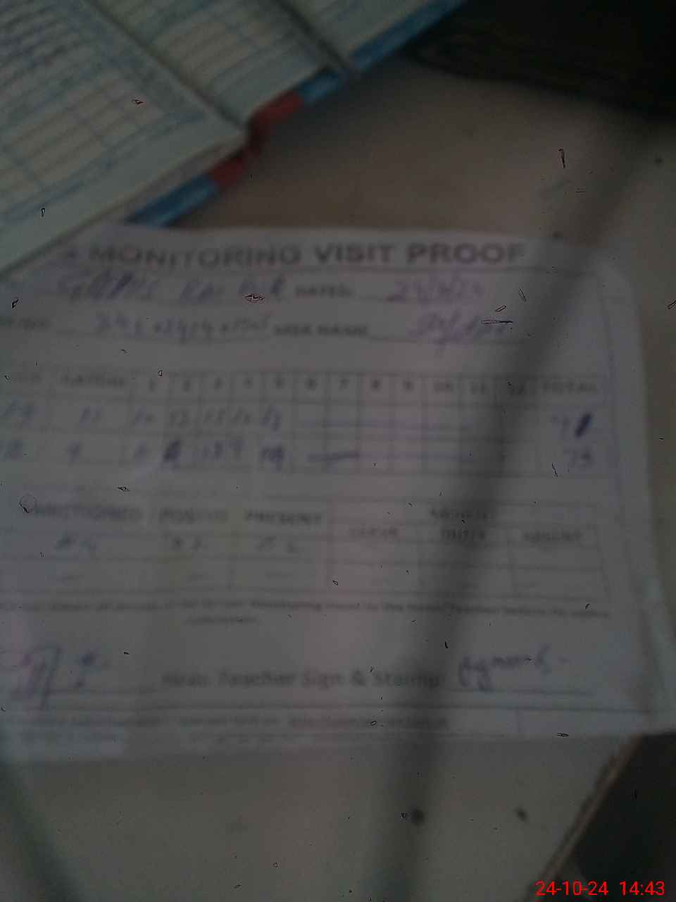 | Attendance Register | Head Teacher | MEA with School | Visit Proof |