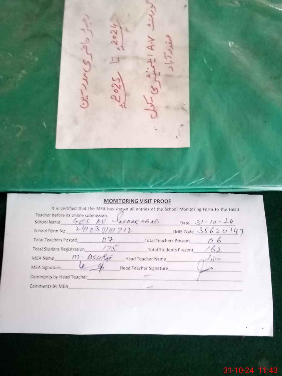 | EMIS Code: 35620147 | Name of School: GES A.V. SAFDARABAD | |||