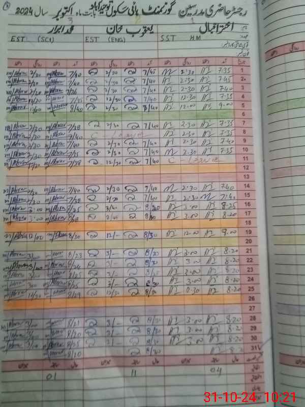 | No. of Students Present - Male | 27 | 0 | 0 | 32 | 24 | 34 | 26 | 27 | 39 | 32 | 28 | 269 | ||||