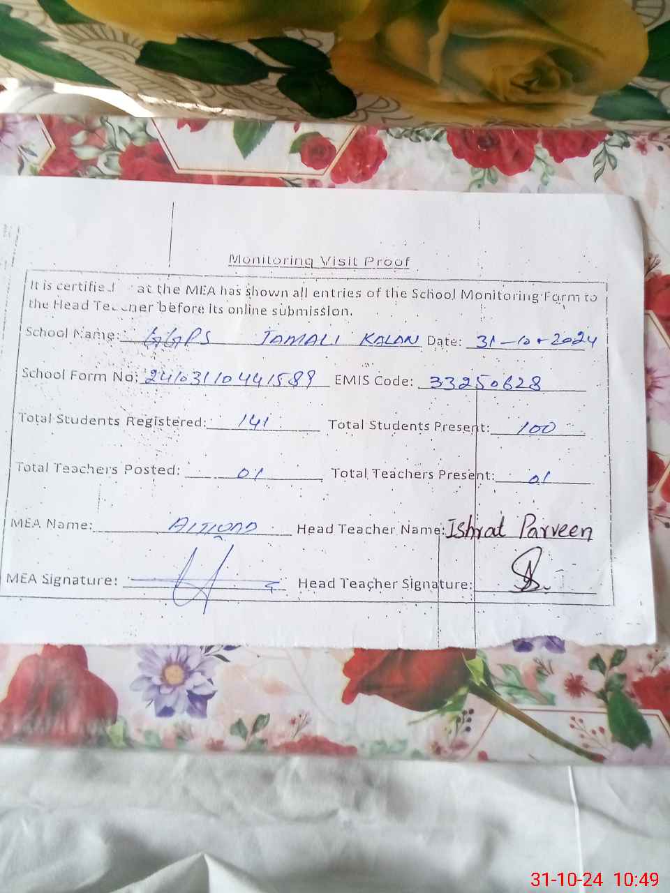 | EMIS Code: 33250628 | Name of School: GGPS JAMALI KALAN | |||