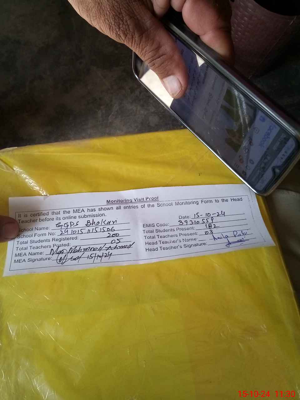 | Attendance Register | Head Teacher | MEA with School | Visit Proof |