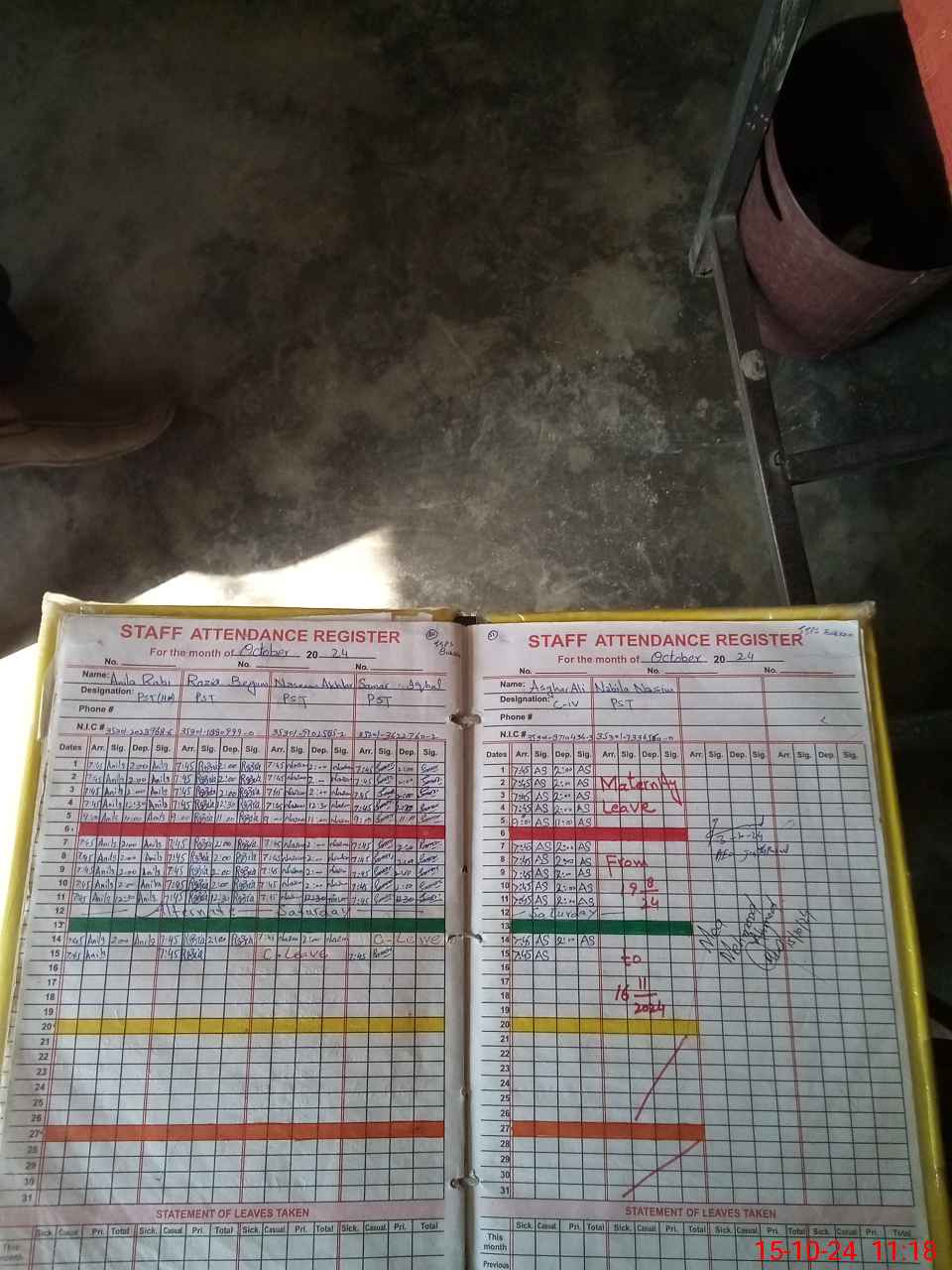 | Leave | Duty | Absent | Maternity | Medical | Ex- Pak |