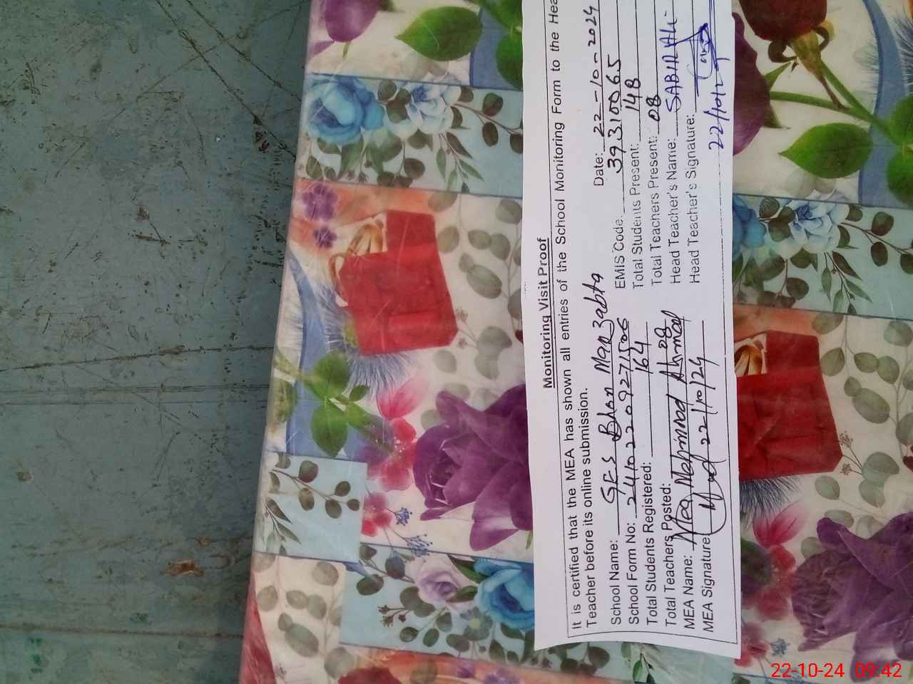 | Attendance Register | Head Teacher | MEA with School | Visit Proof |