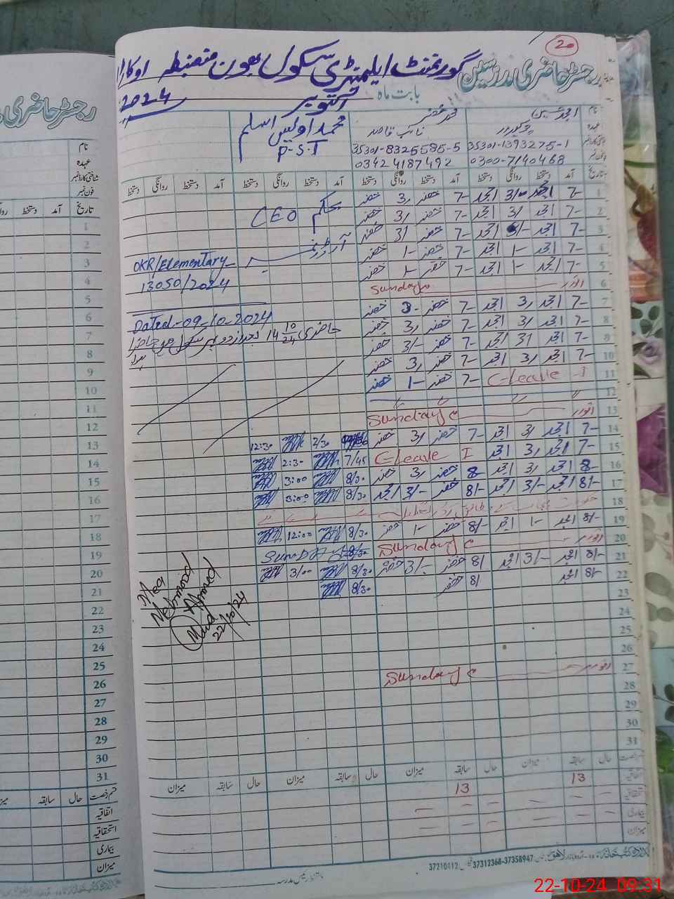 | Name: SA**** AL**** Designation: (School Headmaster's/Headmistress's) Est General Phone/Cell Number: 03**** |