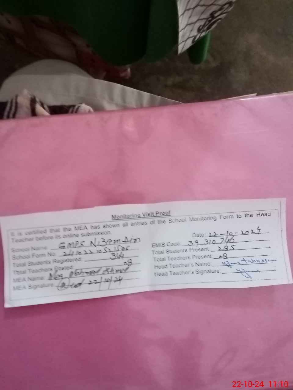 | EMIS Code: 39310746 | Name of School: GMPS NIZAM DIN | |||