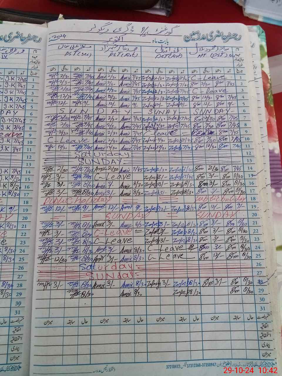 | CNIC | Full Name | Designation | R/C | Absence During Last Calender Month |