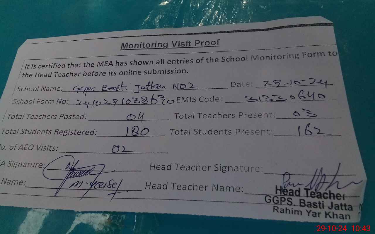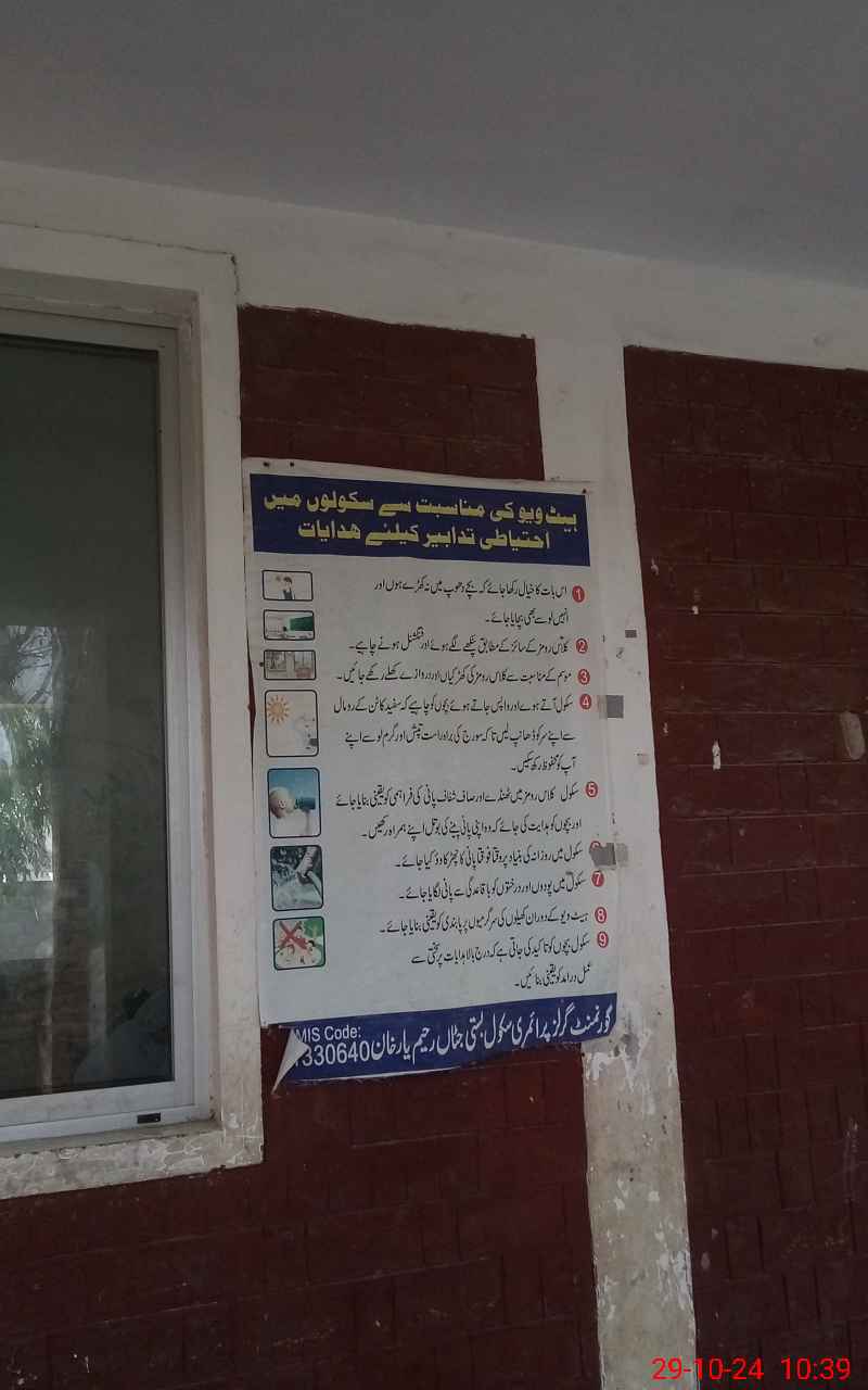 | EMIS Code: 31330640 | Name of School: GGPS BASTI JATTAN R.Y.KHAN (Basti Burra) | |||