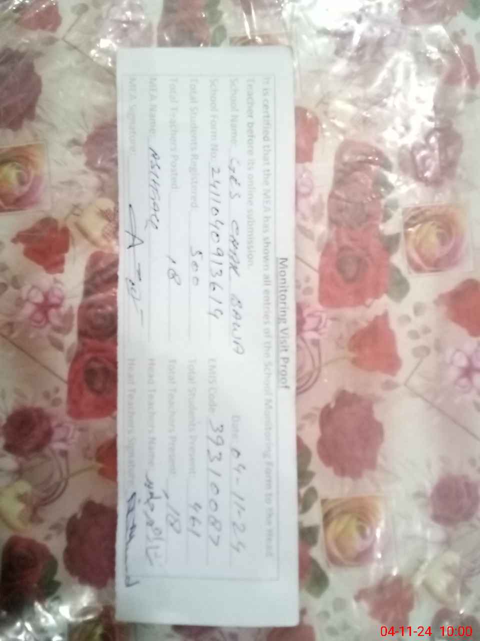 | Certified that this School was Inspected by the Undersigned MEA/DMO Today and the Information Stated Above is as Per Record. | |||||