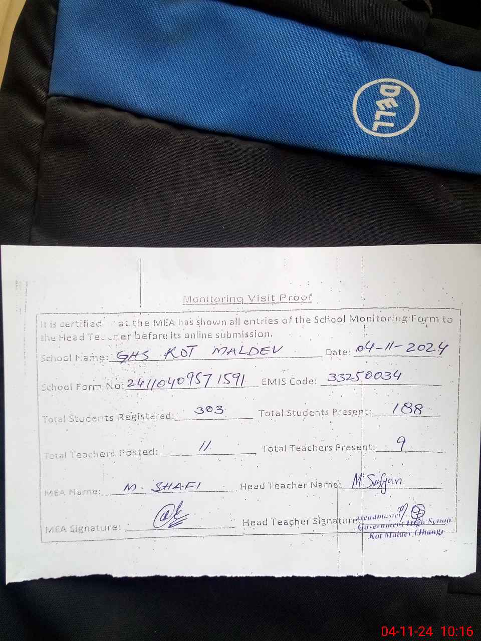 | EMIS Code: 33250034 | Name of School: GHS KOT MALDEV | |||
