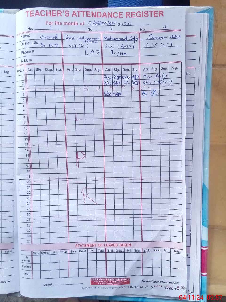 | 33**** | Sy**** Ba**** Sh**** | PST | Regular | 0 | 0 | 0 | 0 | 0 | 0 | 0 | 0 | 0 | Casual |