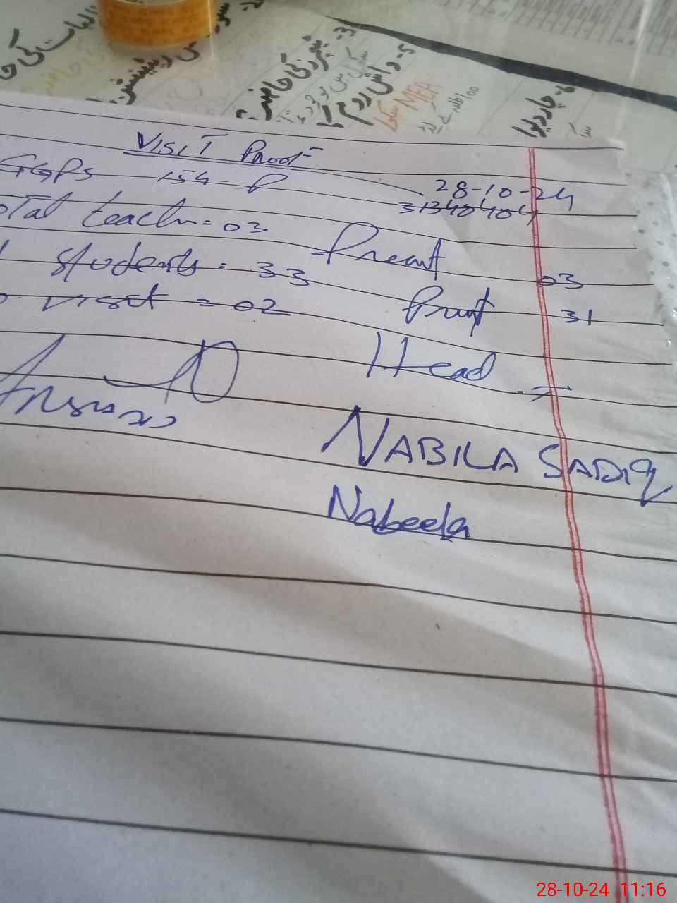 | Attendance Register | Head Teacher | MEA with School | Visit Proof |