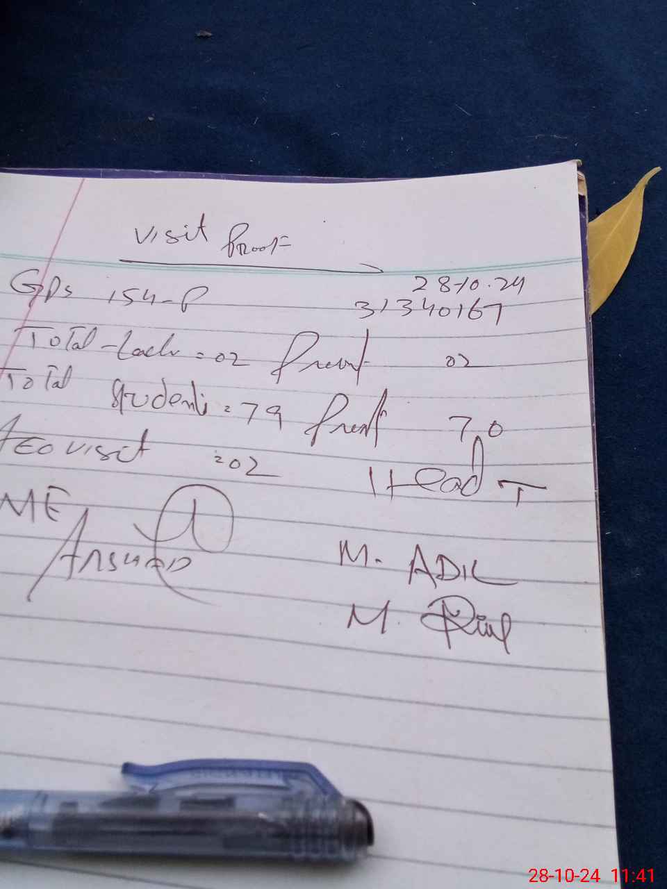 | EMIS Code: 31340167 | Name of School: GPS CHAK NO 154/P | |||