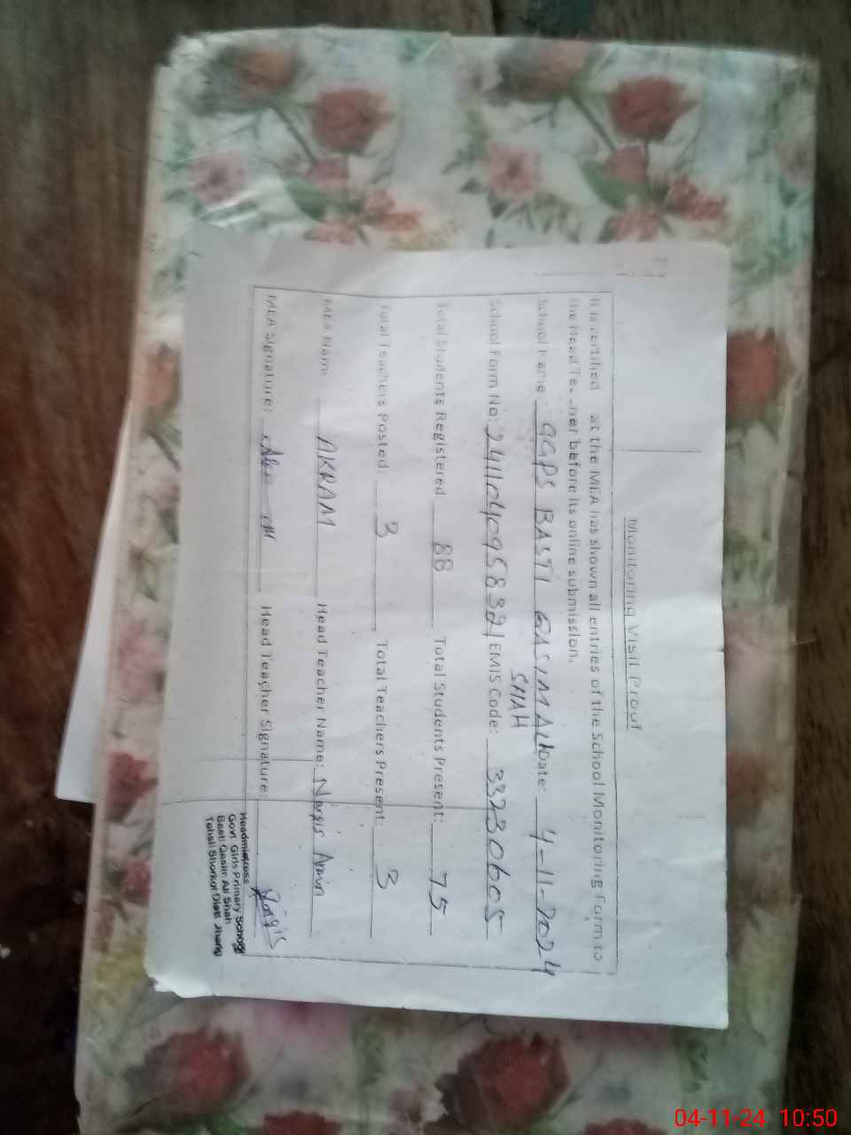 | EMIS Code: 33230605 | Name of School: GGPS BASTI QASIM ALI SHAH | |||