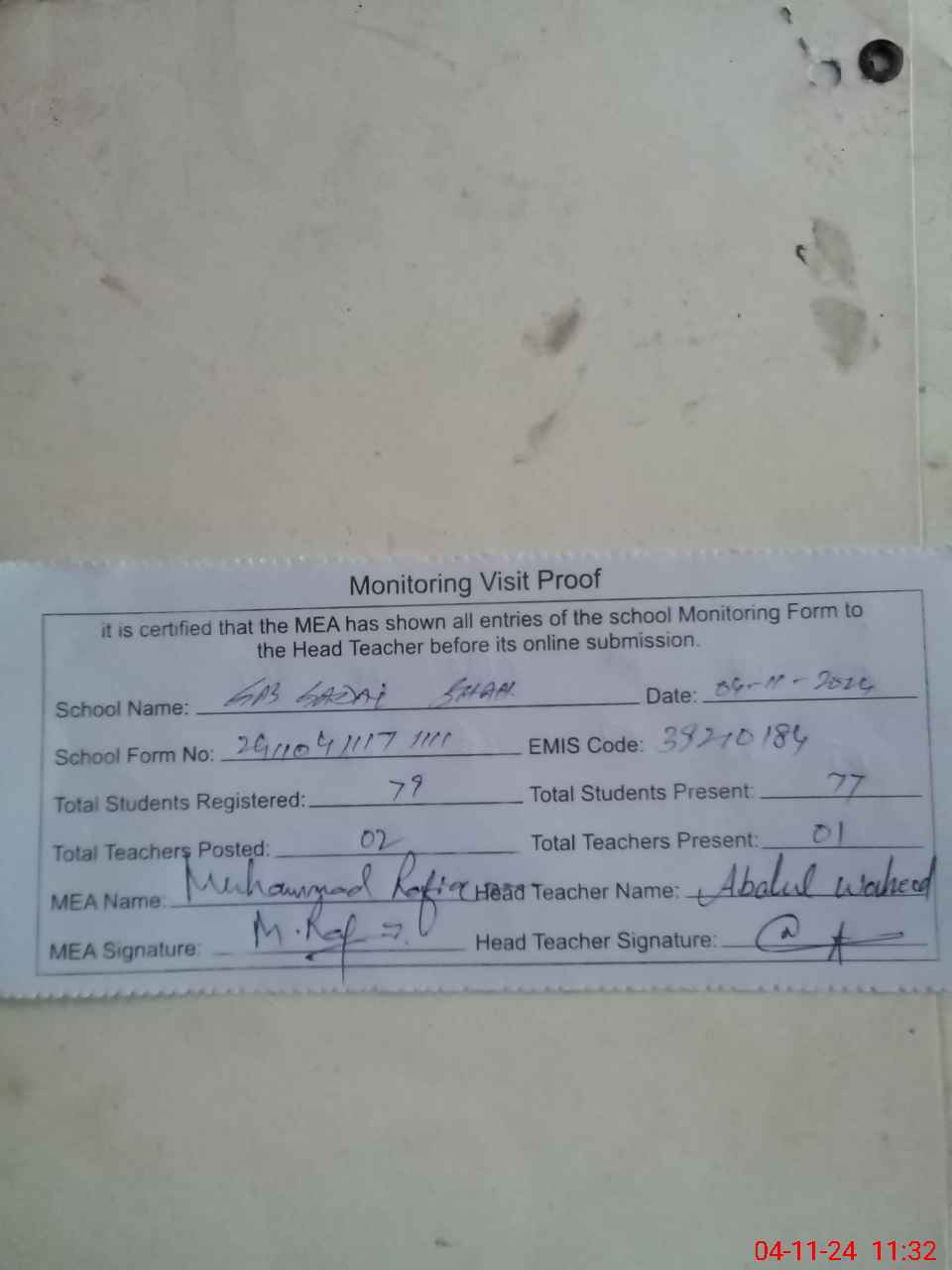 | EMIS Code: 39210184 | Name of School: GPS GADDAI SHAH PO PAKPATTAN | |||