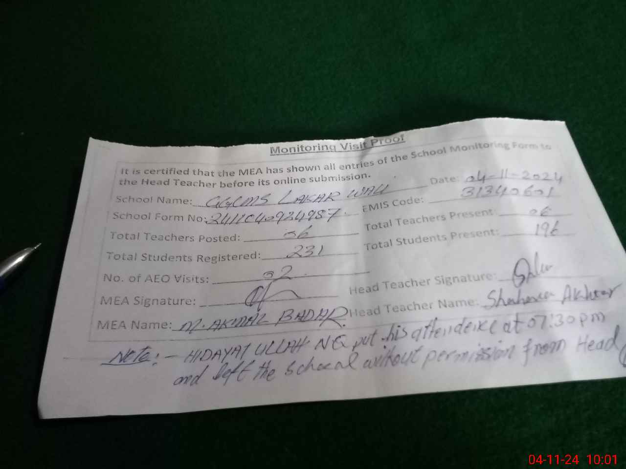 | EMIS Code: 31340601 | Name of School: GGCMS LAKAR WALI | |||