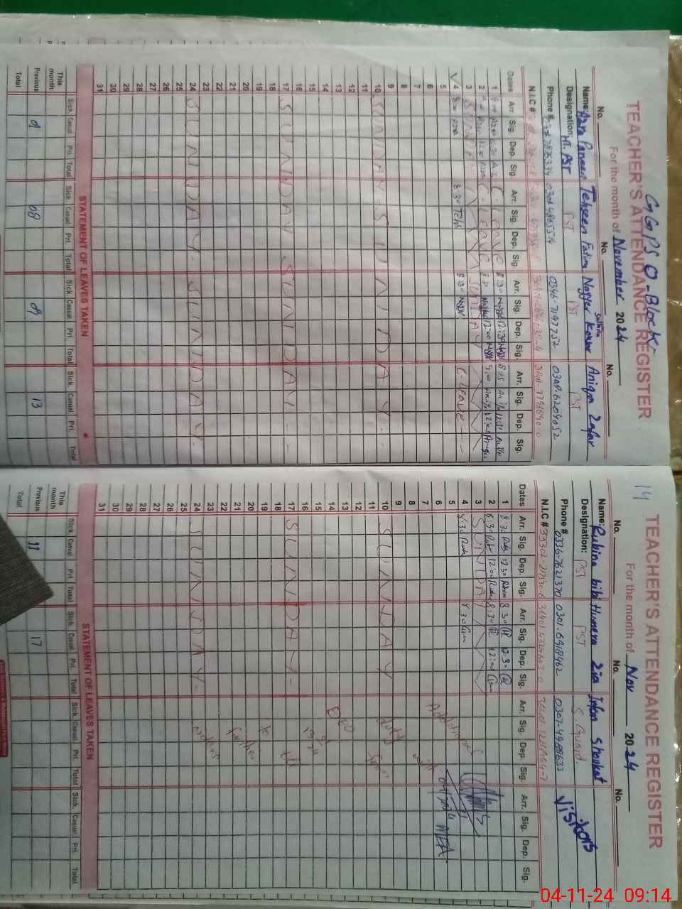| Name: AZ**** PA**** Designation: (School Headmaster's/Headmistress's) PST Phone/Cell Number: 03**** |