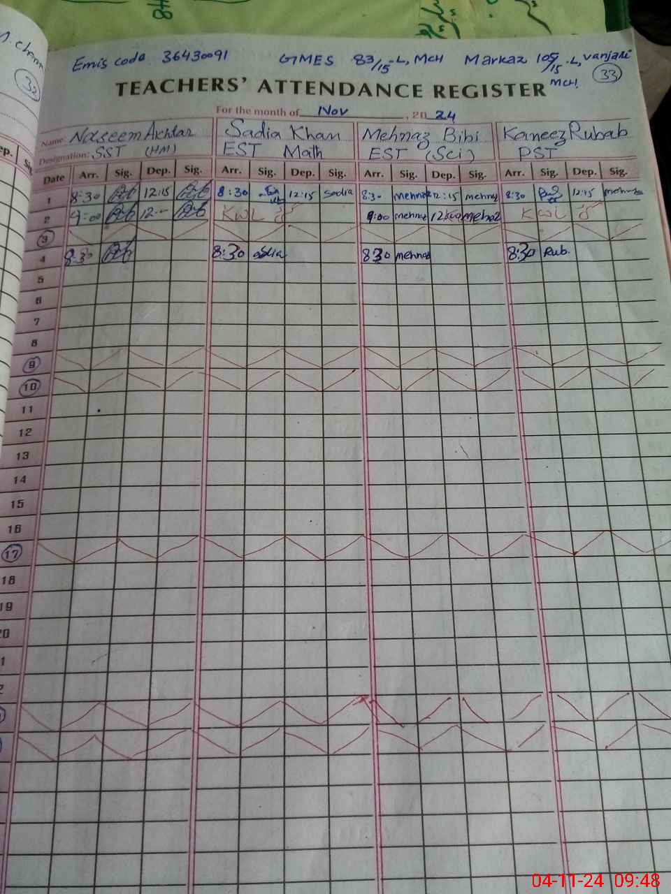 | EMIS Code: 36430091 | Name of School: GMES 83/15-L, MIAN CHANNU | |||