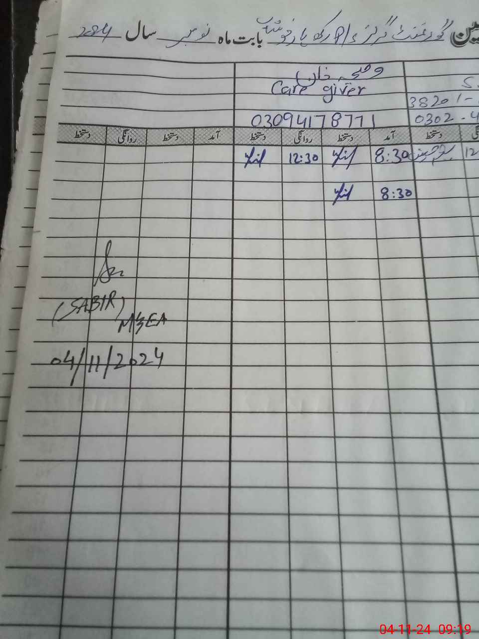 | CNIC | Full Name | Designation | R/C | Absence During Last Calender Month |