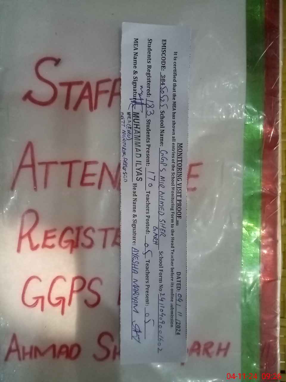 | EMIS Code: 38450525 | Name of School: GGPS MIR AHMAD SHER GHARH | |||