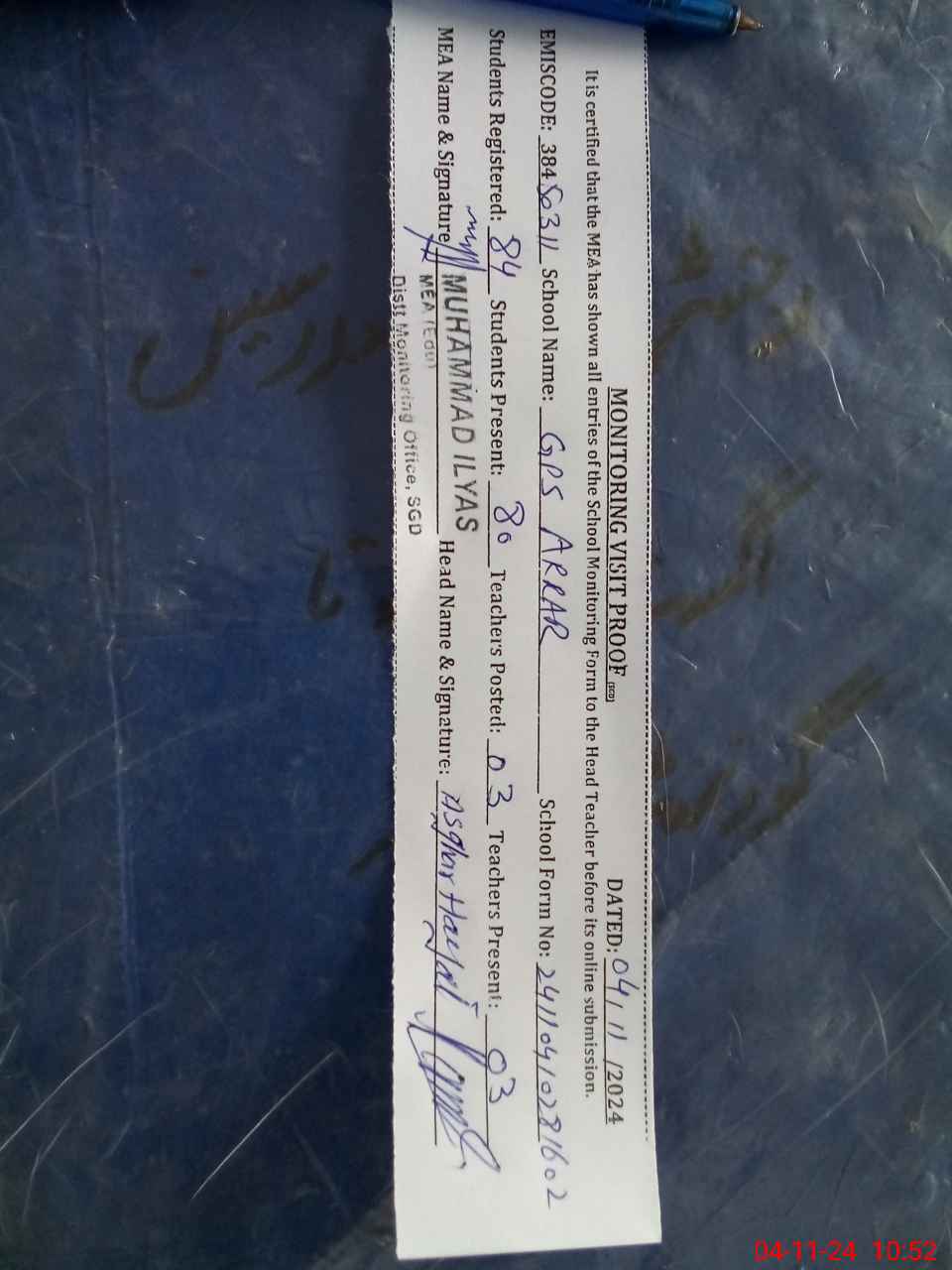 | EMIS Code: 38450311 | Name of School: GPS ARRAR | |||