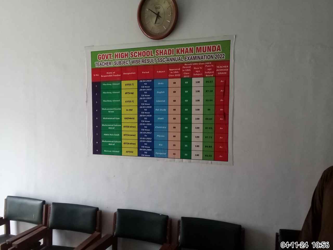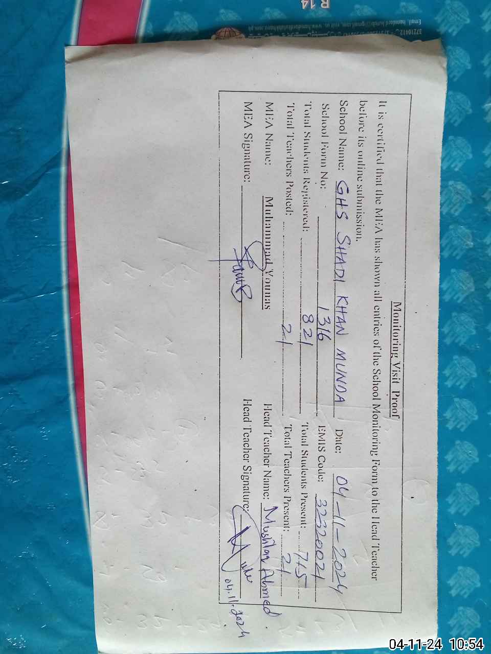 | Name: Mu**** ka**** Kh**** Designation: (School Headmaster's/Headmistress's) HEADMASTER Phone/Cell Number: 03**** |