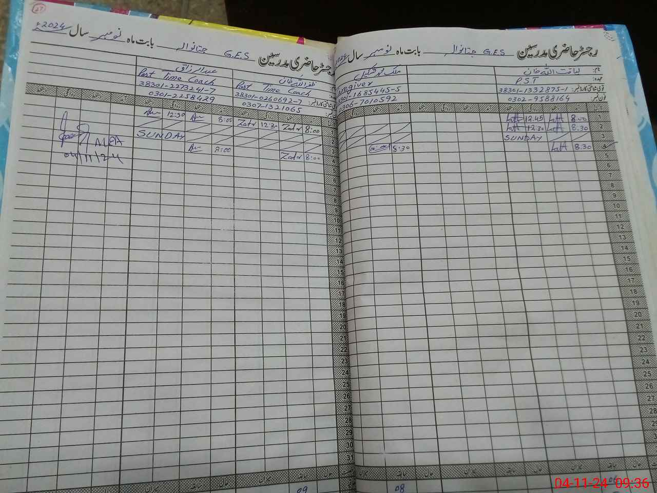 | CNIC | Full Name | Designation | R/C | Absence During Last Calender Month |