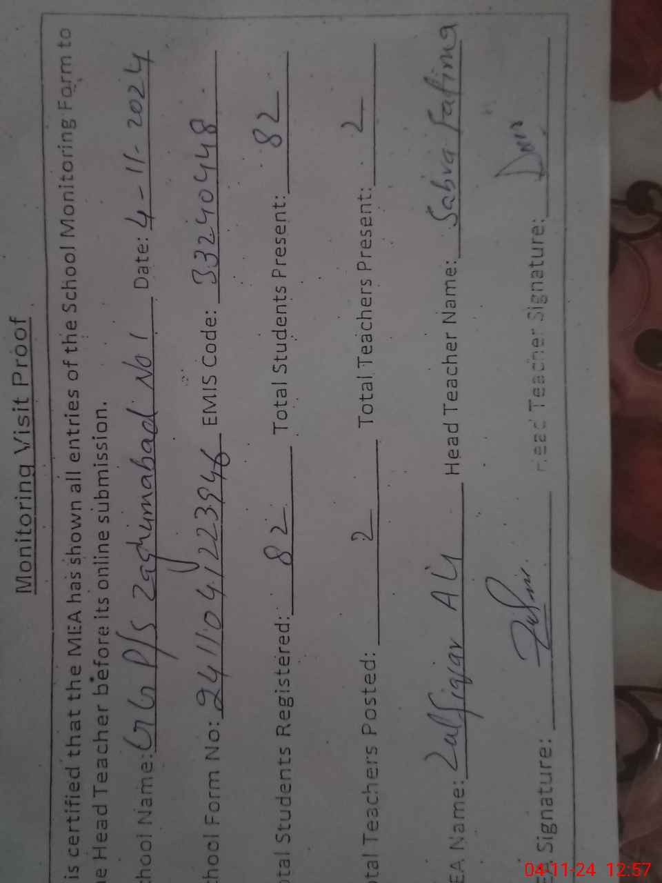 | EMIS Code: 33240448 | Name of School: GGPS ZAIGHAM ABAD NO. 1 | |||